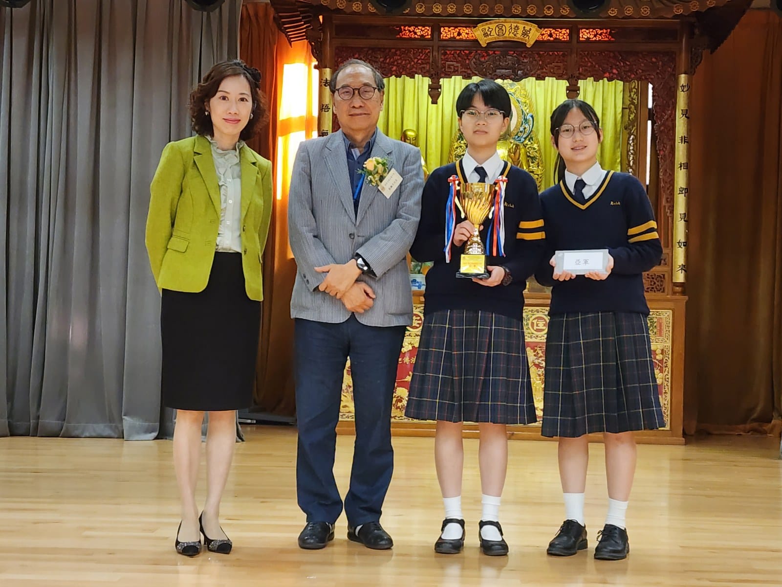 3A龔楚榆及3A陳紫君榮獲亞軍,獲頒獎盃及書券800元正。