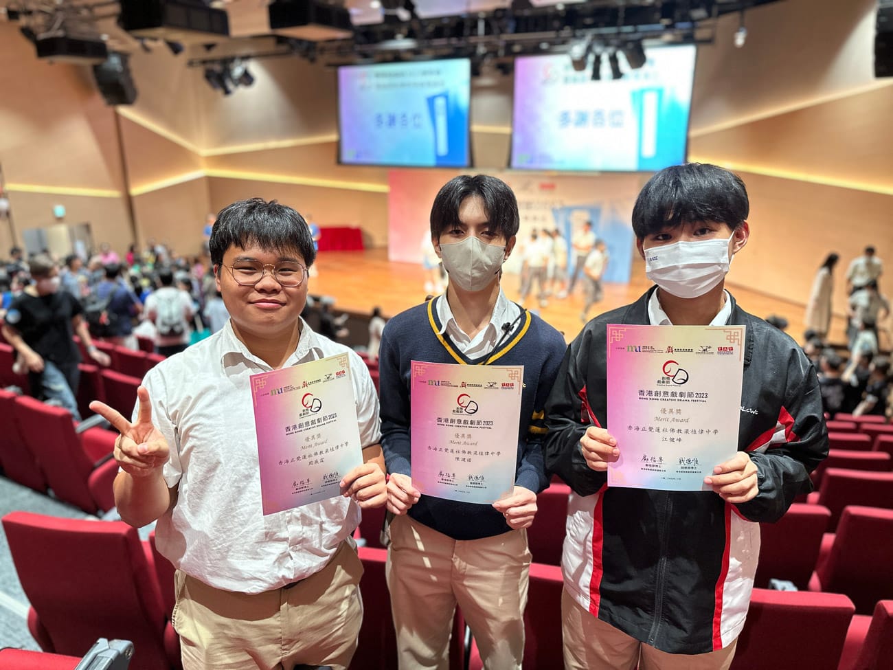本校戲劇隊派出三位中五同學 —— 陳湕諾、江健峰、周展霆,參與了由香港都會大學教育及語文學院及香港教師戲劇會所舉辦的「創意戲劇節2023」,並榮獲優異獎,獲邀出席五月二十日之「創意戲劇節2023頒獎禮暨論語故事教育劇場演出」,在此恭賀三位同學。